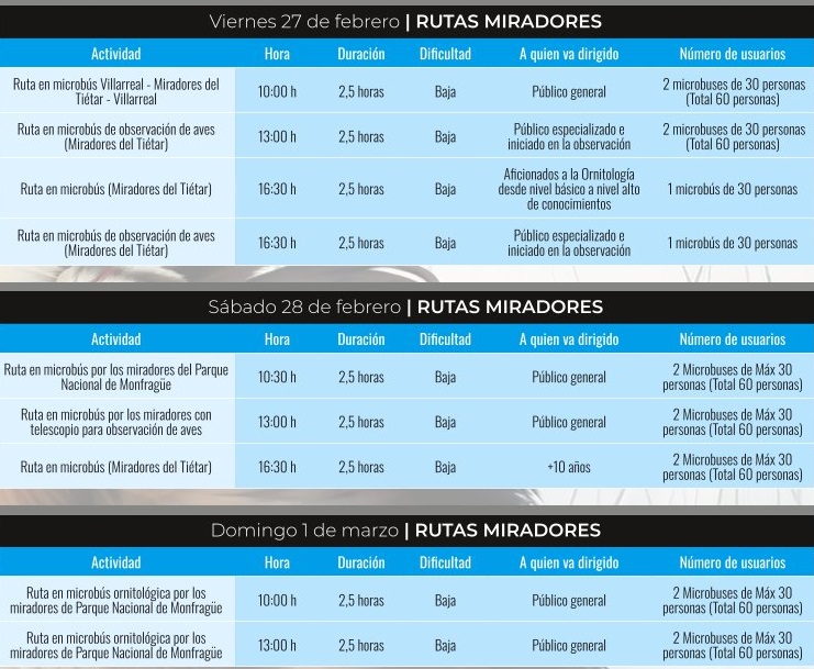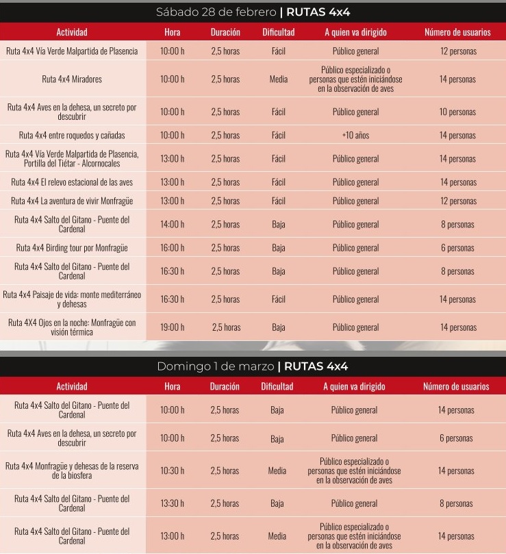*Con el fin de mantener la conciencia y el cuidado por la naturaleza, e intentando evitar la huella ecológica que supone la celebración de FIO, las rutas y las actividades infantiles conllevarán un coste simbólico. La recaudación íntegra de estas actividades irá destinada al proyecto “Campaña de censo de grullas en Extremadura 26/27”, a cargo de la asociación conservacionista GRUS EXTREMADURA.